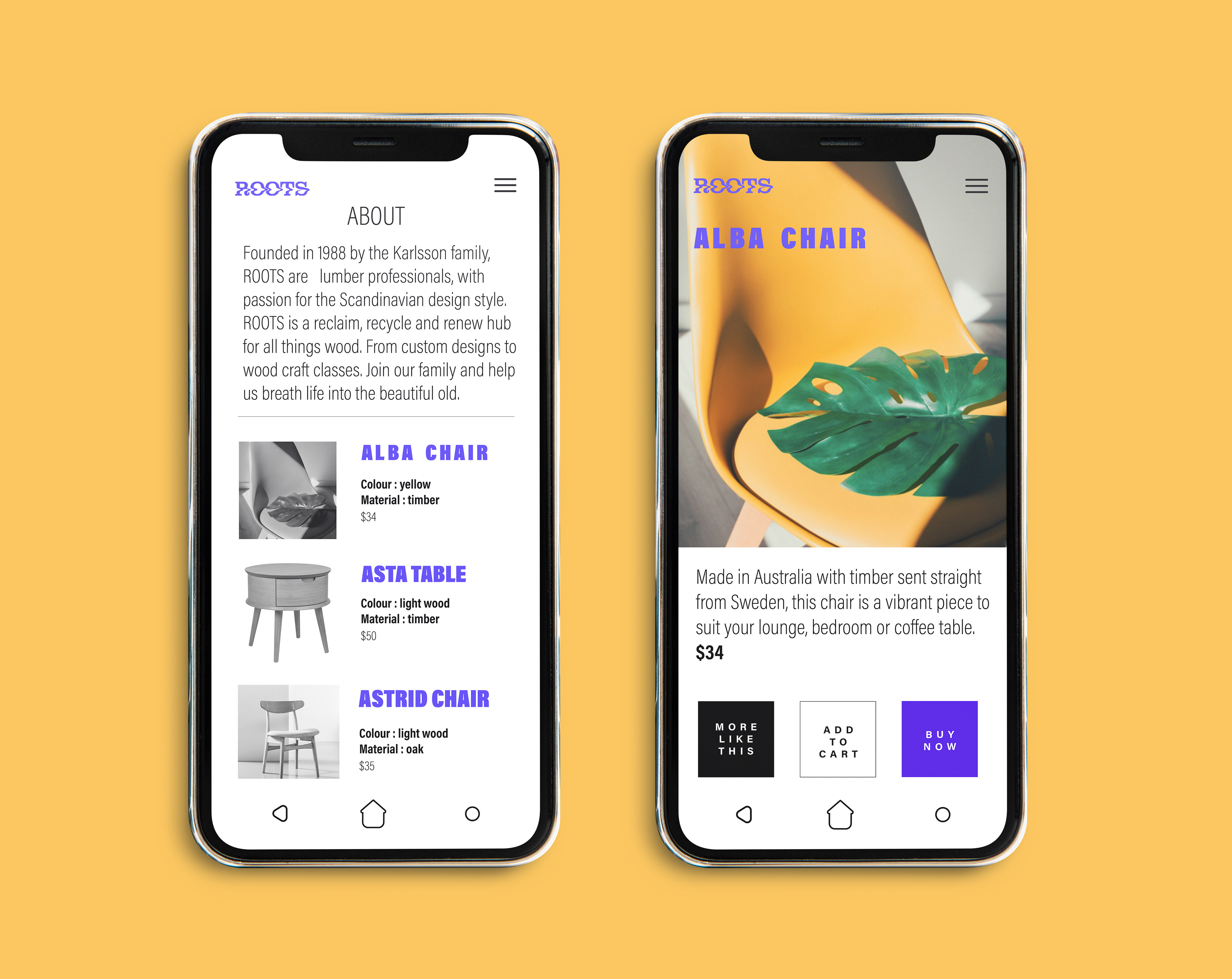 ROOTS is a fresh identity for a modern recycled and reclaimed materials hub that sells crafted furniture in a Midcentury Scandinavian design style.